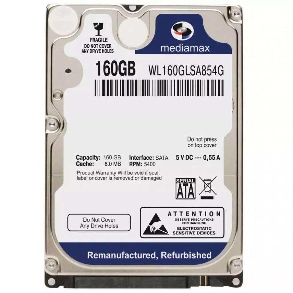 160 GB, 5400 об/мин, 8 MB, SATA II, Refurbished(восстановленный), 2,5"