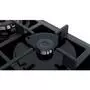 Тип поверхности - газовая, закаленное стекло, количество конфорок - 4, Передняя правая 1 кВт, Задняя левая 1.75 кВт, Задняя правая 3.3 кВт, Передняz левая 1.75 кВт, Управление - механическое, Газ-контроль - есть, Электроподжиг - есть, Материал решеток - чугун, Размеры ниши для встраивания - 4.5 x 56-56.2 x 48-49.2 см, черный