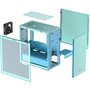 Геймерские, Minitower, Micro - ATX, Mini - ITX, Слотов расширения - 4, Вентиляторы - 1 х 120 мм, Дополнительно - Top 2x12/14 см, Front 3x12 or 2х14 см, GPU - до 320 мм, CPU - 165 мм, PSU - 160 мм, 225 х 400 х 431 мм, 6.2, голубой, салатовый
