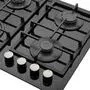 Тип поверхности - газовая, закаленное стекло, количество конфорок - 4, Передняя правая 1 кВт, Задняя правая 1.75 кВт, Задняя левая 1.75 кВт, Передняя левая 2.5 кВт, Управление - механическое, Электроподжиг - есть, Материал решеток - чугун, Размеры ниши для встраивания - 56 х 49 см, черный