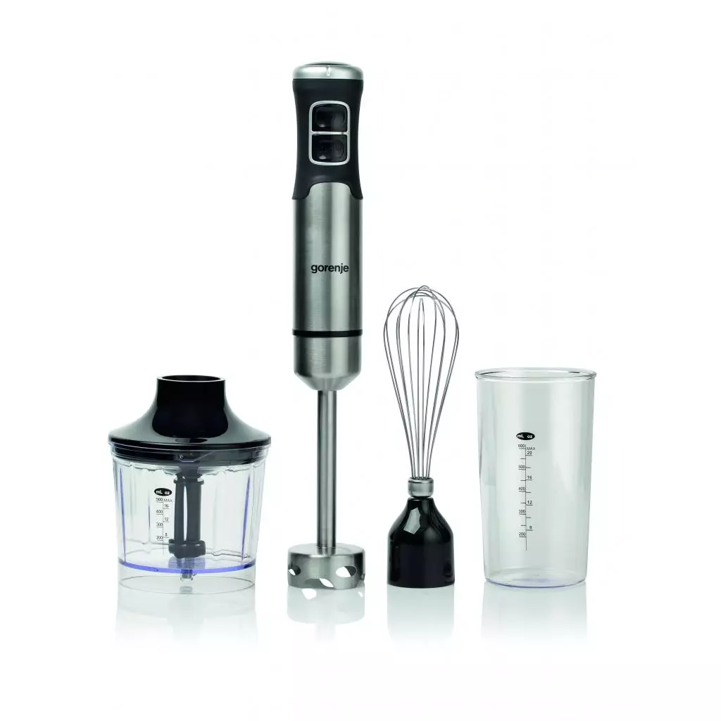 погружной, 1000 Вт, Емкость стакана - 0.6 л, с измельчителем, Емкость мини-измельчителя - 500 мл, количество скоростей - 1, Импульсный режим - есть, турборежим - есть, 39.2 x 27.8 x 34.2 см, 1.8 кг, нержавеющая сталь