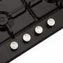 Для защиты переключателей от перегрева, фронтальная панель управления смещена влево к вспомогательной конфорке, на безопасном расстоянии от горелок. Конструкция переключателей позволяет настраивать работу поверхности одной рукой, ведь ручки оборудованы электроподжигом, который активируется нажатием на поворотный переключатель, кроме того такой принцип работы делает невозможным случайное включение варочной поверхности.