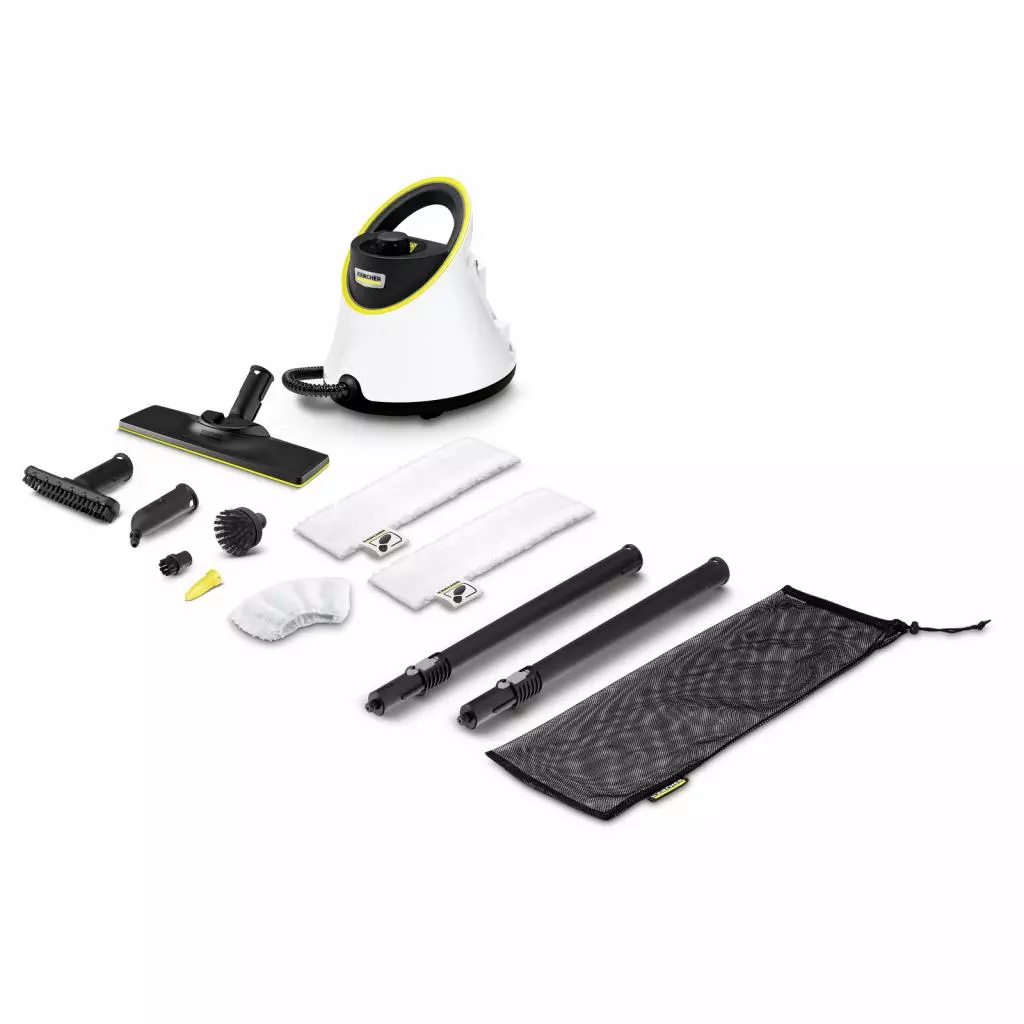 Тип - в виде пылесоса, мощность - 1500 Вт, объем заливаемой воды - 1л, максимальное давление пара - 3.2 бар, Цвет - белый