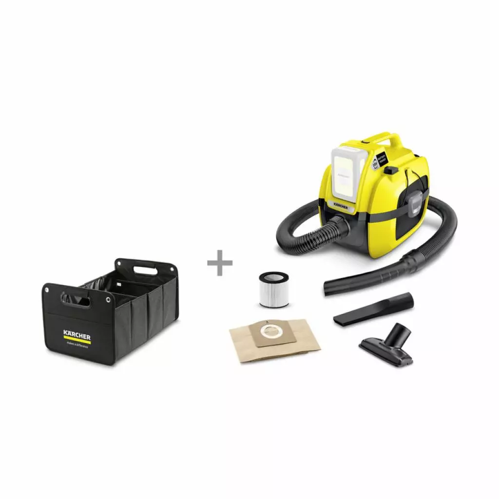 Благодаря работе от аккумулятора беспроводной хозяйственный пылесос WD 1 Compact Battery обеспечивает максимальную свободу движений, может использоваться без подключения к электросети, а также чрезвычайно легок и компактен. В зависимости от используемого аккумулятора 18 В (аккумулятор не входит в комплект поставки), хозяйственный пылесос может работать от 10 до 20 минут. Компактный аккумуляторный пылесос WD 1 также имеет прочный семилитровый пластиковый контейнер и патронный фильтр для удобной уборки сухого и влажного мусора без необходимости замены фильтра. Дополнительные характеристики: всасывающий шланг с оптимизированным потоком и специальные принадлежности, такие как щелевая насадка и насадки для обивки мебели обеспечивают оптимальный сбор мусора и идеальную чистоту, особенно при очистке салона автомобиля. Еще одной практичной деталью является гибкая резиновая лента, которую можноиспользовать для точного крепления всасывающего шланга. Компактный аккумулятор WD 1 приносит удовольствие от уборки благодаря дополнительным функциям, таким как функция выдува, система блокировки Pull & Push, эргономичная ручка для переноски и практичное решение для хранения аксессуаров. А благодаря его совместимости с платформой 18 В, аккумуляторы от других устройств на 18 В могут также использоваться для компактной батареи WD 1.