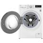 LG F4V5TG0W оснащена плоской дверцей, из-за чего внутри барабана помещается больше вещей, дверца не скрипит и имеет крепкие шарнирные крепления. Также, дверца открывается на 180⁰, чтобы было удобно загружать барабан. В любой момент вы можете дозагрузить белье прямо посреди процесса стирки без потери выставленных параметров.