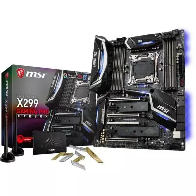 Soc - 2066, Intel X299, DDR4, Макс. память - 128 ГБ, Внешние - 1 x USB 3.1 Gen2 Type-C, 1 x USB 3.1 Gen2, 4 x USB 3.1 Gen1, 1 x Flash BIOS Button, 1 x Clear CMOS button, 1 x RJ45, 3 x USB 2.0, 1 x PS/2, 1 x optical SPDIF out, 5 x Audio, Внутренние - 2 x M.2, 1 x Ultra M.2, 1 x TPM, 8 x Sata 6.0 Gb/s, ATX
