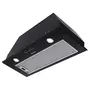 Подобный тип вытяжек был разработан специально, чтобы уменьшить визуальную нагрузку в интерьере и сэкономить полезное пространство. Полновстраиваемый прибор монтируется в нижнюю часть кухонного гарнитура таким образом, что панель управления располагается параллельно варочной поверхности. Вытяжка изготовлена из крашеного металла черного цвета. При выборе полновстраиваемого агрегата следует учитывать размер навесных шкафов на кухне, которые должны соответствовать ширине вытяжки.