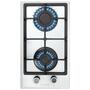 Тип поверхности - газовая, закаленное стекло, количество конфорок - 2, Передняя 1 кВт, Задняя 2.6 кВт, Управление - механическое, Газ-контроль - есть, Электроподжиг - есть, Материал решеток - чугун, Размеры ниши для встраивания - 48 х 25.5 см, белый