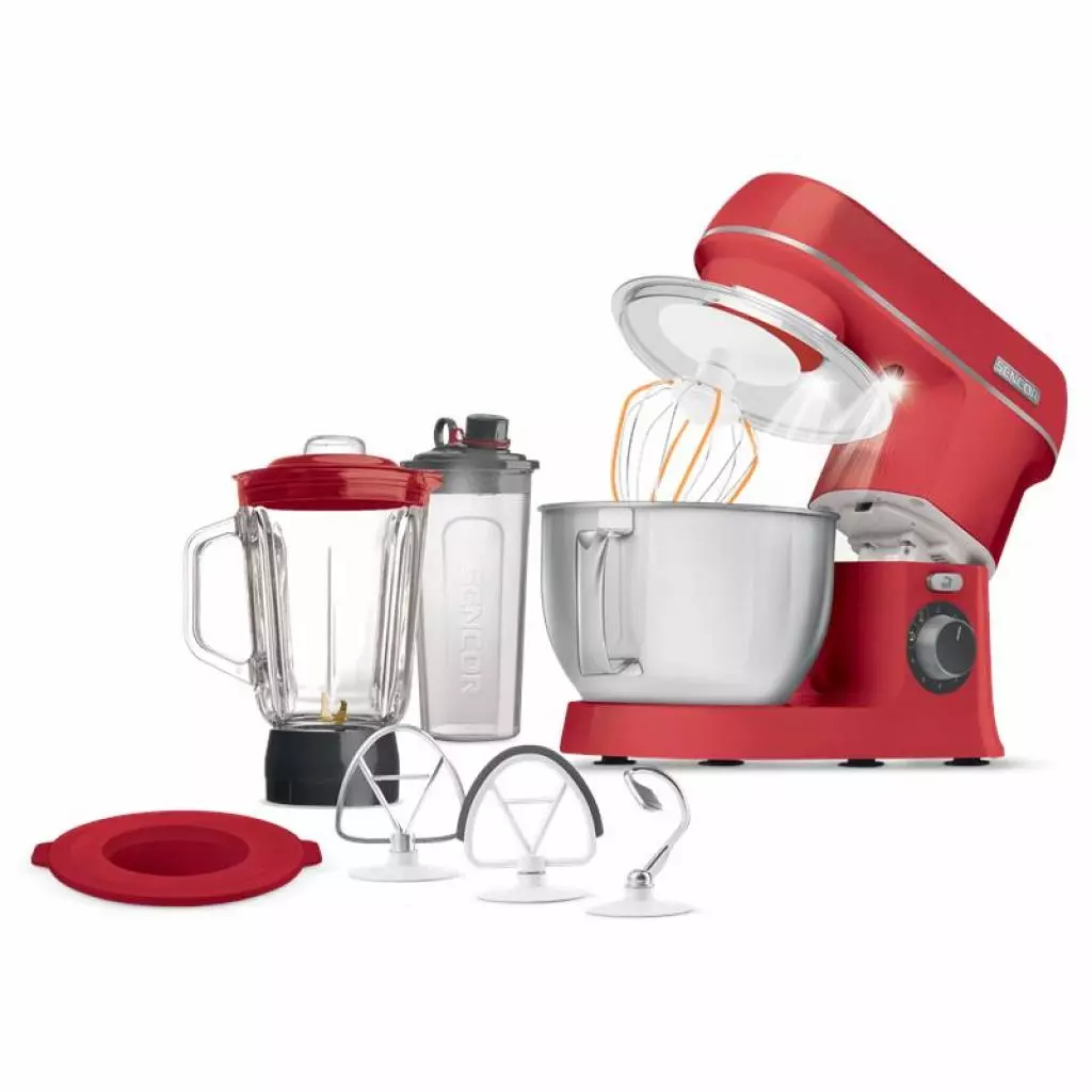 Тип - кухонный комбайн, мощность - 800 Вт, объем основной чаши - 4 л, габариты - 38 х 34 х 41 см, Цвет - красный