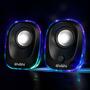 Дизайн SVEN 330 понравится любителям вещей праздничных и ярких - корпус акустики красиво подсвечивается разными цветами. При необходимости подсветку можно отключить. Модель хороша не только дизайном. Маленькие колонки SVEN 330 играют громко и четко – в небольшом помещении с их помощью можно устроить настоящую дискотеку. На лицевой стороне правой колонки расположен удобный регулятор громкости. Питание модели осуществляется от USB-порта компьютера или адаптера 5V DC, а аудио сигнал колонка получает через кабель 3.5мм minijack.