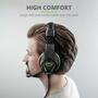 Игровая гарнитура с накладными наушниками, складным микрофоном и регулируемым оголовьем.
