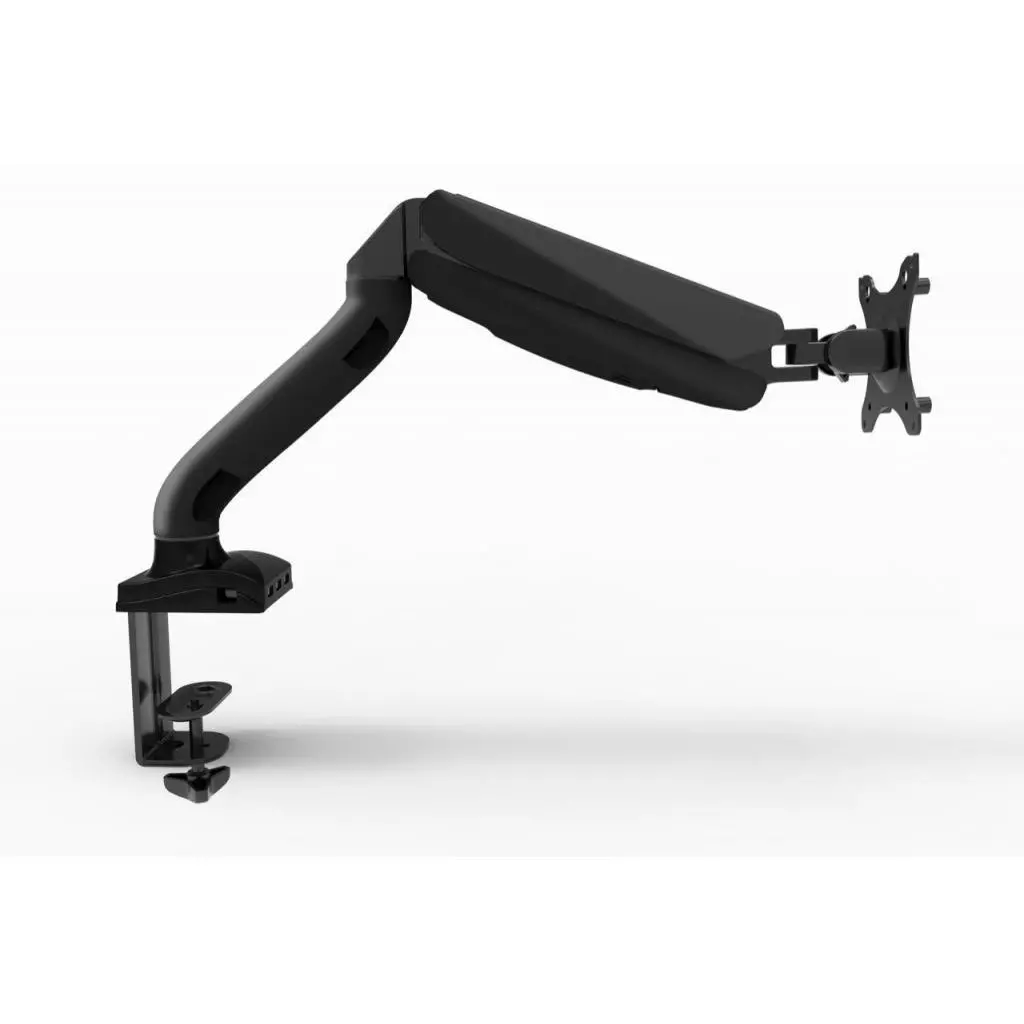 Детали кронштейна выполнены методом алюминиевого литья, что обеспечивает высокую прочность изделия. Крепление рассчитано для мониторов с размерами диагонали от 13" до 27" и максимальным общим весом до 7 кг. Кронштейн UFT MM2 with USB 2-7kg фиксируется за столешницу при помощи струбцины.