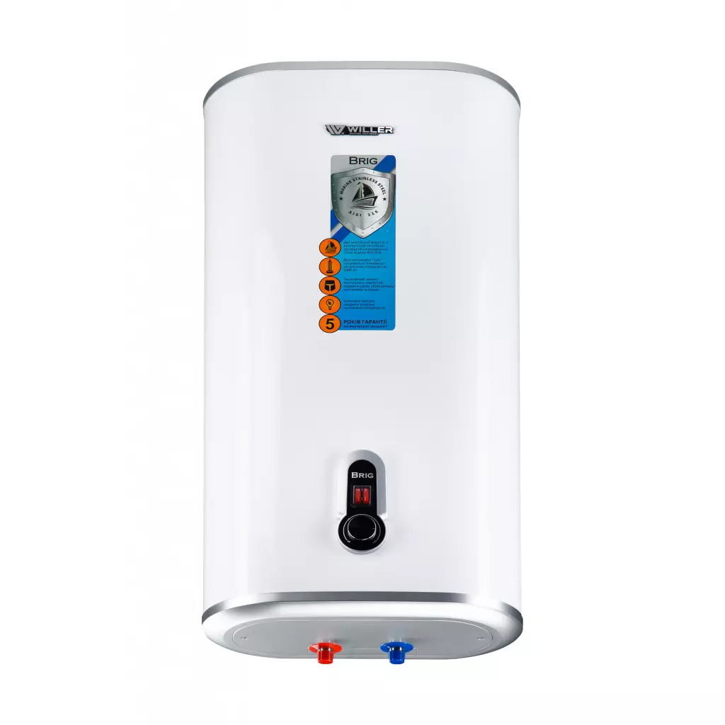 Mirror - плаский електричний водонагрівач з внутрішнім баком з нержавіючої сталі AISI316 (відрізняється більш високою антикорозійною стійкістю в порівнянні з поширеною AISI304). Мінімальна глибина виробу (260-295мм з урахуванням монтажних планок) дозволить встановити бойлер навіть в обмежених простором умовах. В бойлер Willer IV50DR Brig Mirror встановлені два сухих нагрівальних елемента потужністю 1000 Вт кожен. Нагрівальні елементи розташовані в спеціальних захисних кожухах (фланцях) і безпосередньо не контактують з водою, що значно збільшує їх довговічність і економічність.Нержавіюча сталь AISI316 - це стійкий до процесу корозії сплав, що містить не менше 17% хрому і з низьким вмістом вуглецю. Високий вміст хрому в сплаві забезпечує високу стійкість до процесу корозії. За своїм складом нержавіюча сталь AISI316 нагадує більш поширену AISI304, збагачену молібденом. Молібден - один з небагатьох легуючих елементів, здатних одночасно підвищити міцність, в'язкі властивості сплаву, а також корозійну стійкість.Нержавіюча сталь AISI316 проявляє високу стійкість в агресивних середовищах: морська вода, водопровідна вода з вмістом хлору. Використовується при виготовленні елементів конструкції в кораблебудуванні. Нержавіюча сталь, з якої виготовлені внутрішні баки бойлера Willer IV50DR Brig Mirror має чудові антикорозійні властивості і механічну міцність. Ця сталь повністю відповідає гігієнічним вимогам, тому зазвичай використовується в харчовій, фармацевтичній і медичній сфері. А завдяки своїм поліпшеним антикорозійним властивостям ця нержавіюча сталь використовується навіть для роботи в розчинах більшості кислот. З усіх сталей 300-ї серії марка AISI316 є найбільш корозійностійкою і стійкою до зовнішніх і хімічних впливів.Ключові особливості бойлерів Willer серії Brig:Внутрішній бак з нержавіючої сталі марки AISI316, яка має кращі антикорозійні властивості в порівнянні з поширенішою AISI304Для максимального захисту в бойлер встановлені два захисних магнієвих анода максимально допустимого розміру, по одному в кожному бакуНова механічна панель управління з двома клавішами управління нагрівальними елементами. Ергономічна ручка дозволяє плавно регулювати температуру нагрівання води в бойлері. Доступні температурні режими: "off", "min", "eco", "max"Два незалежних захищених (сухих) нагрівальні елементи по одному в баку, кожен включається окремою клавішею. Доступні режими потужності: 1,0 кВт; 2,0 кВтТеплоізоляція забезпечується шаром якісного щільного пінополіуретану товщиною 20ммПодвійний захист від перегріву води (терморегулятор + термозахист)Захист від надлишкового тиску в баку за допомогою багатофункціонального запобіжного клапана.
